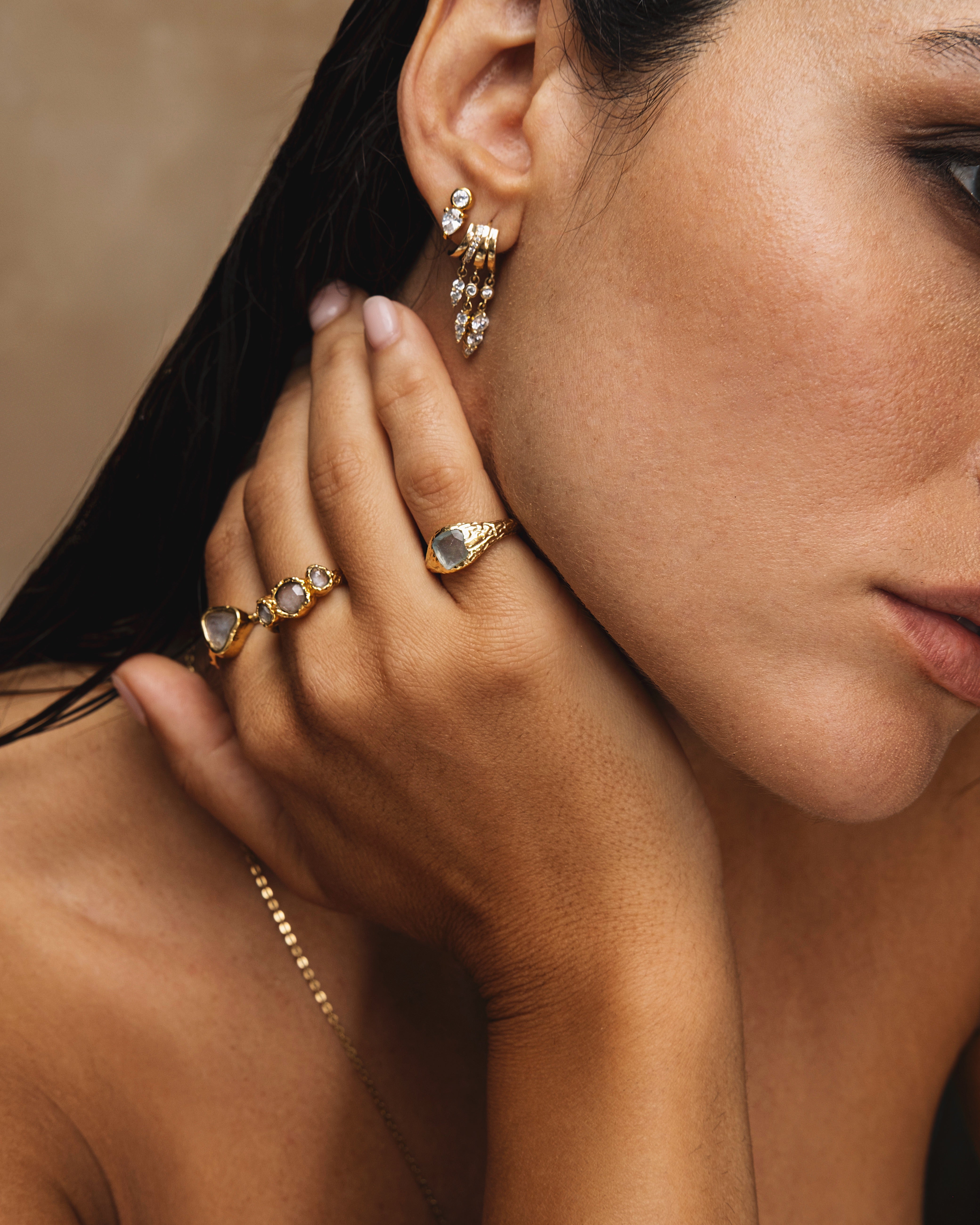 Meet the Blue Topaz Collection - delicate, light blue stones inspired by droplets of water. Each piece catches the light with a soft, clean glow, adding a fresh delicate hint of colour you can wear every day or layer for evening. Calm, luminous, effortlessly refined.