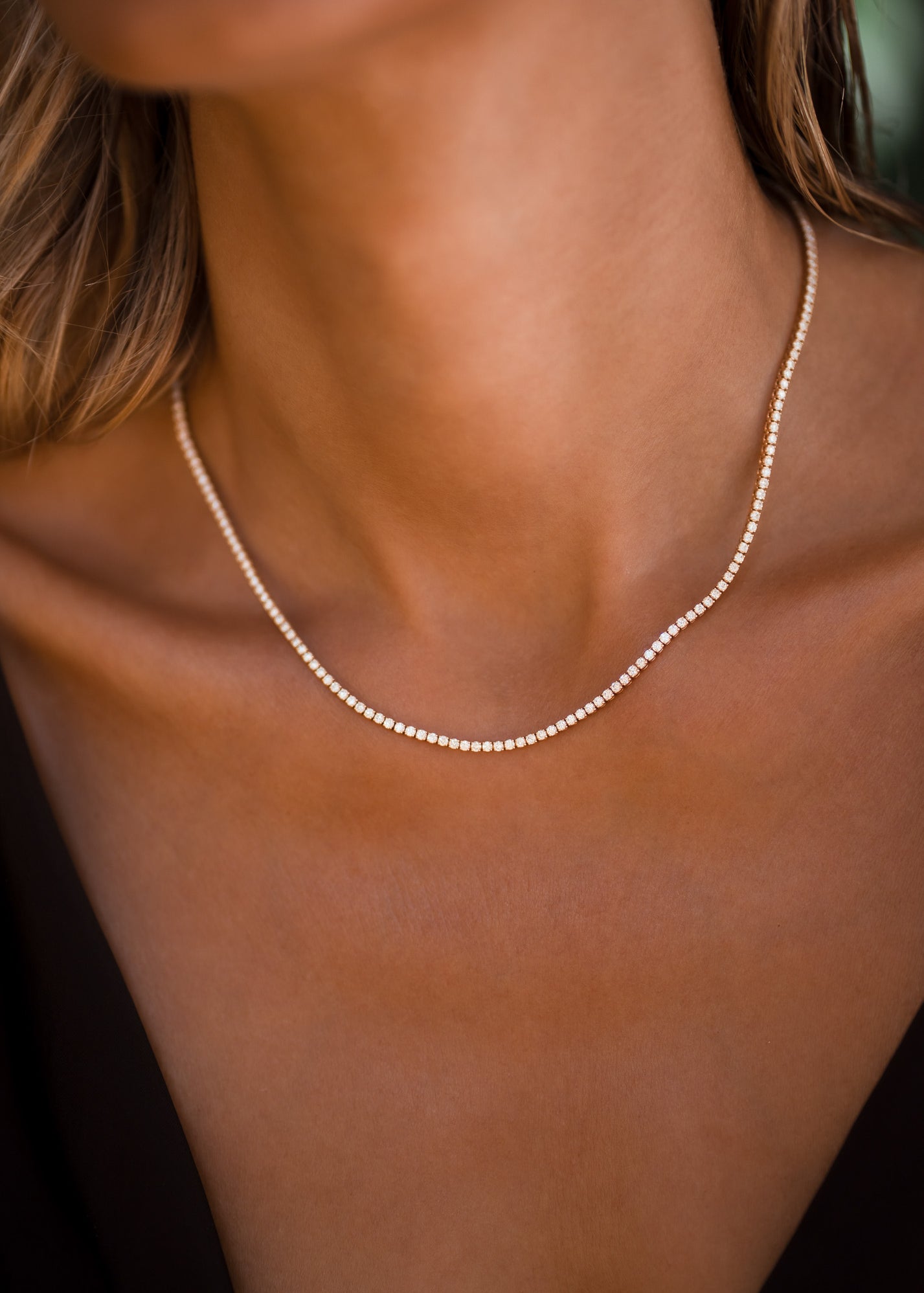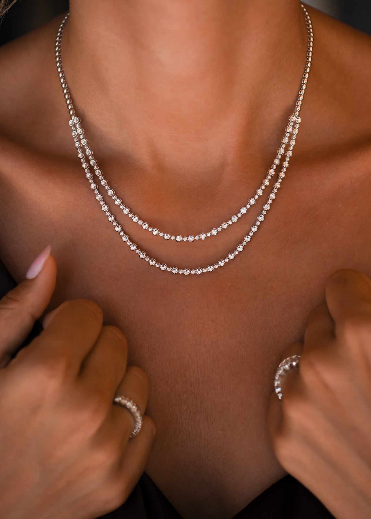 Double Layered Diamond Tennis Necklace - Solid Gold