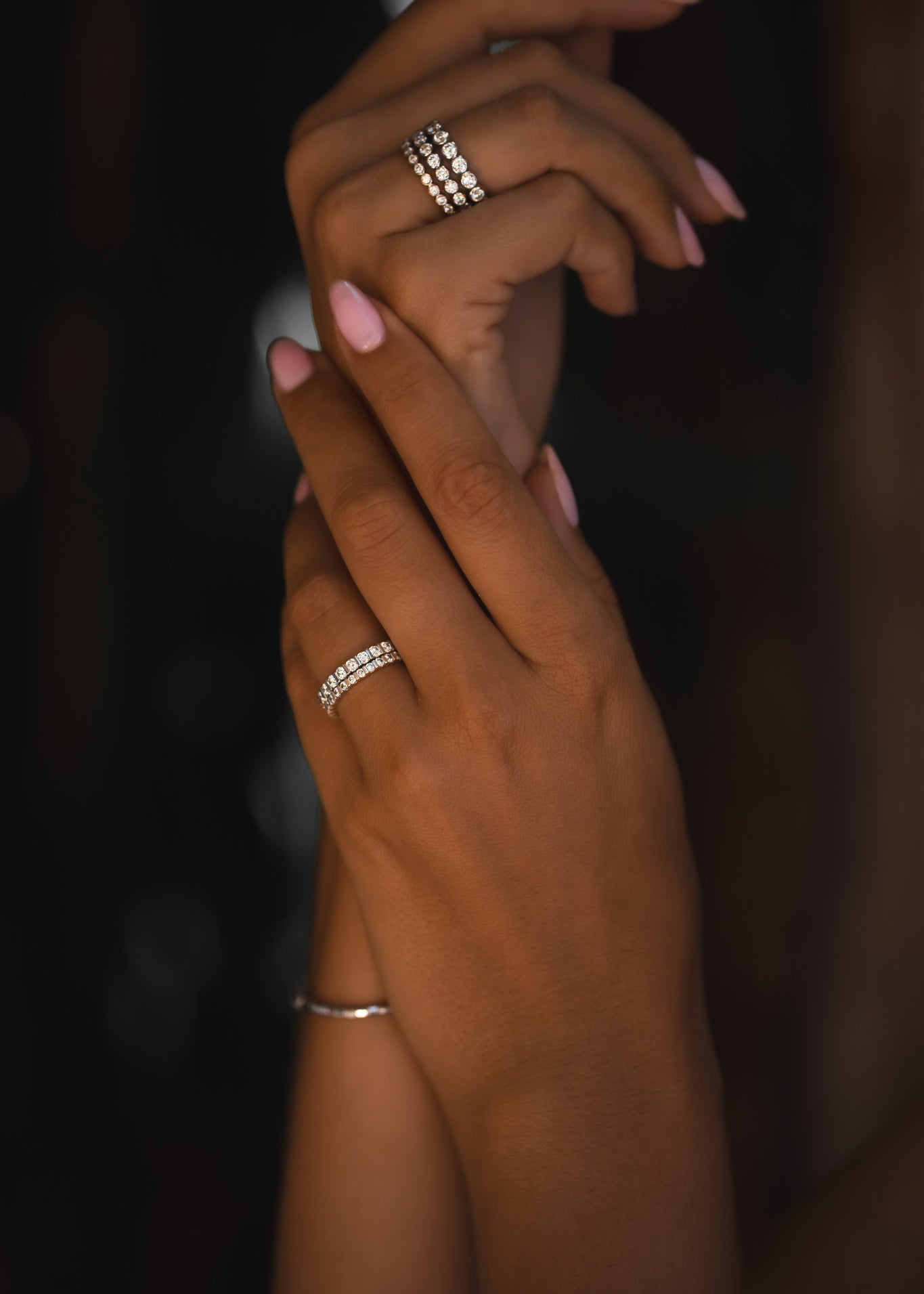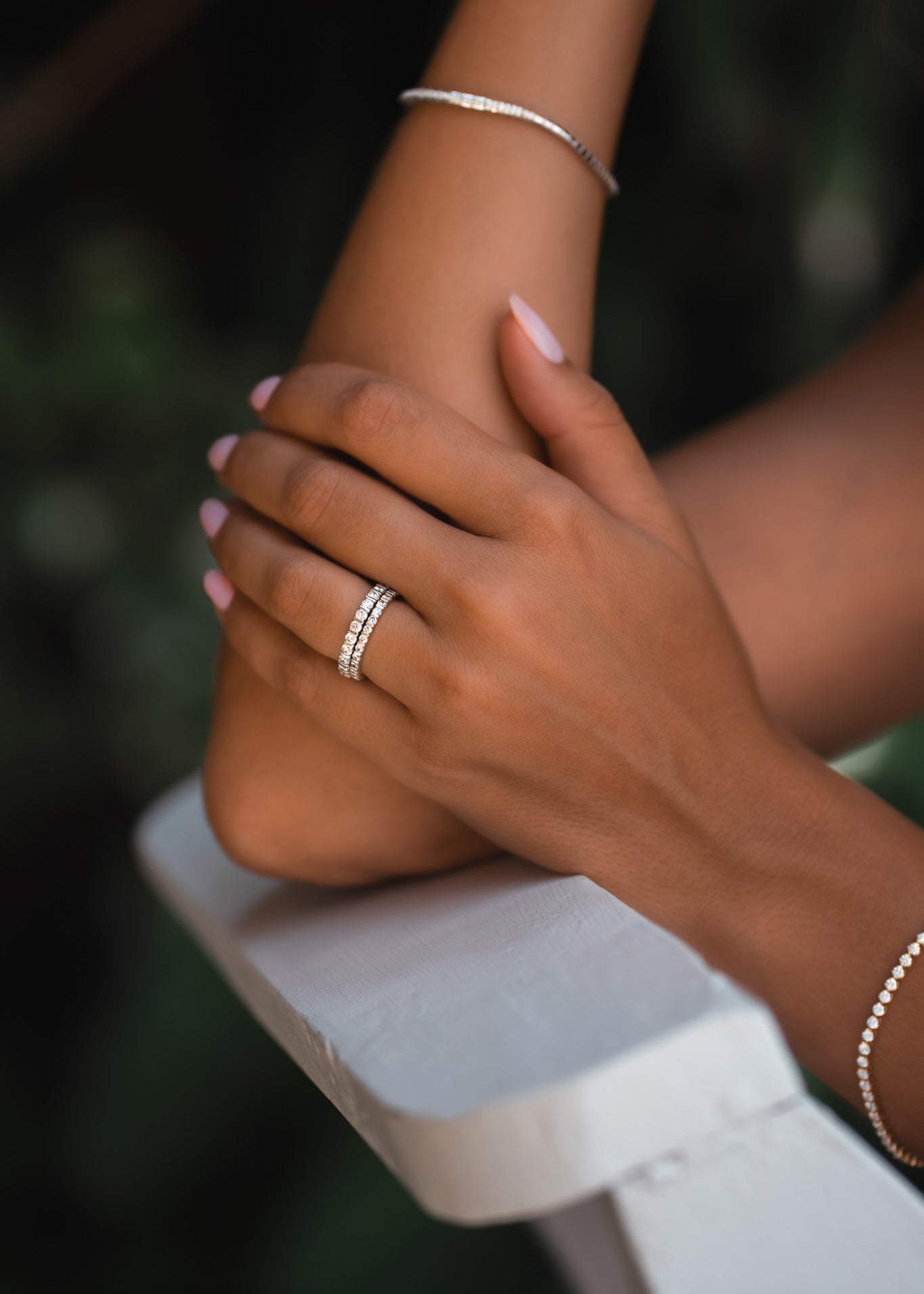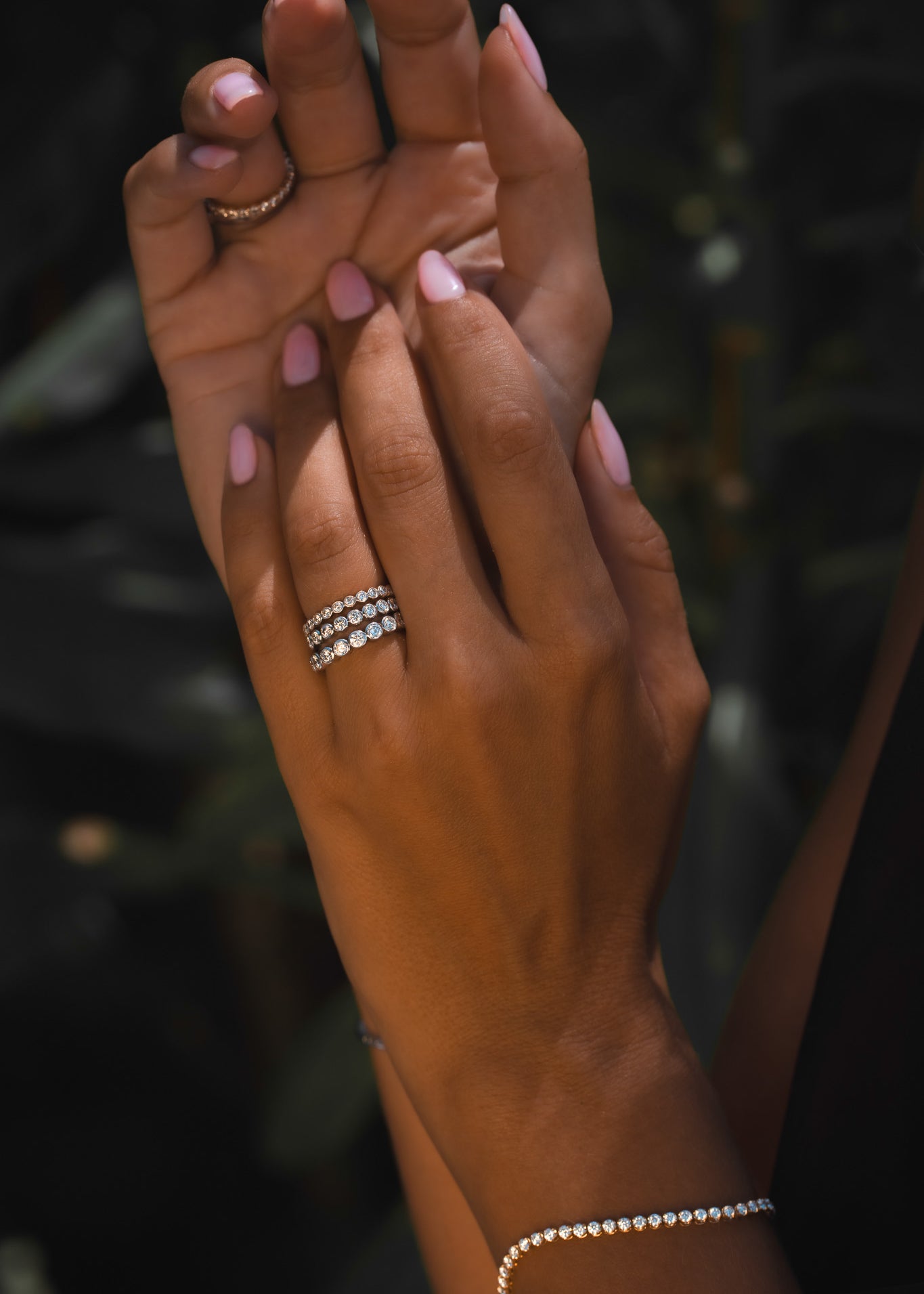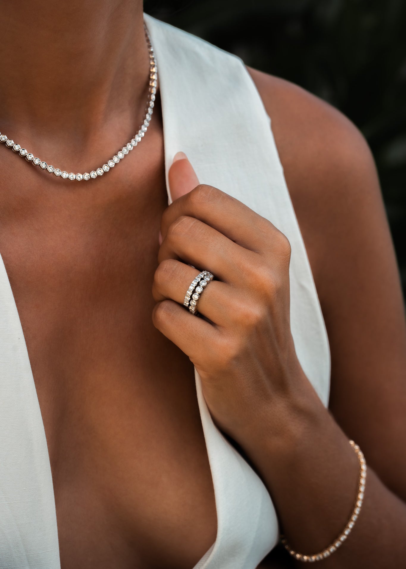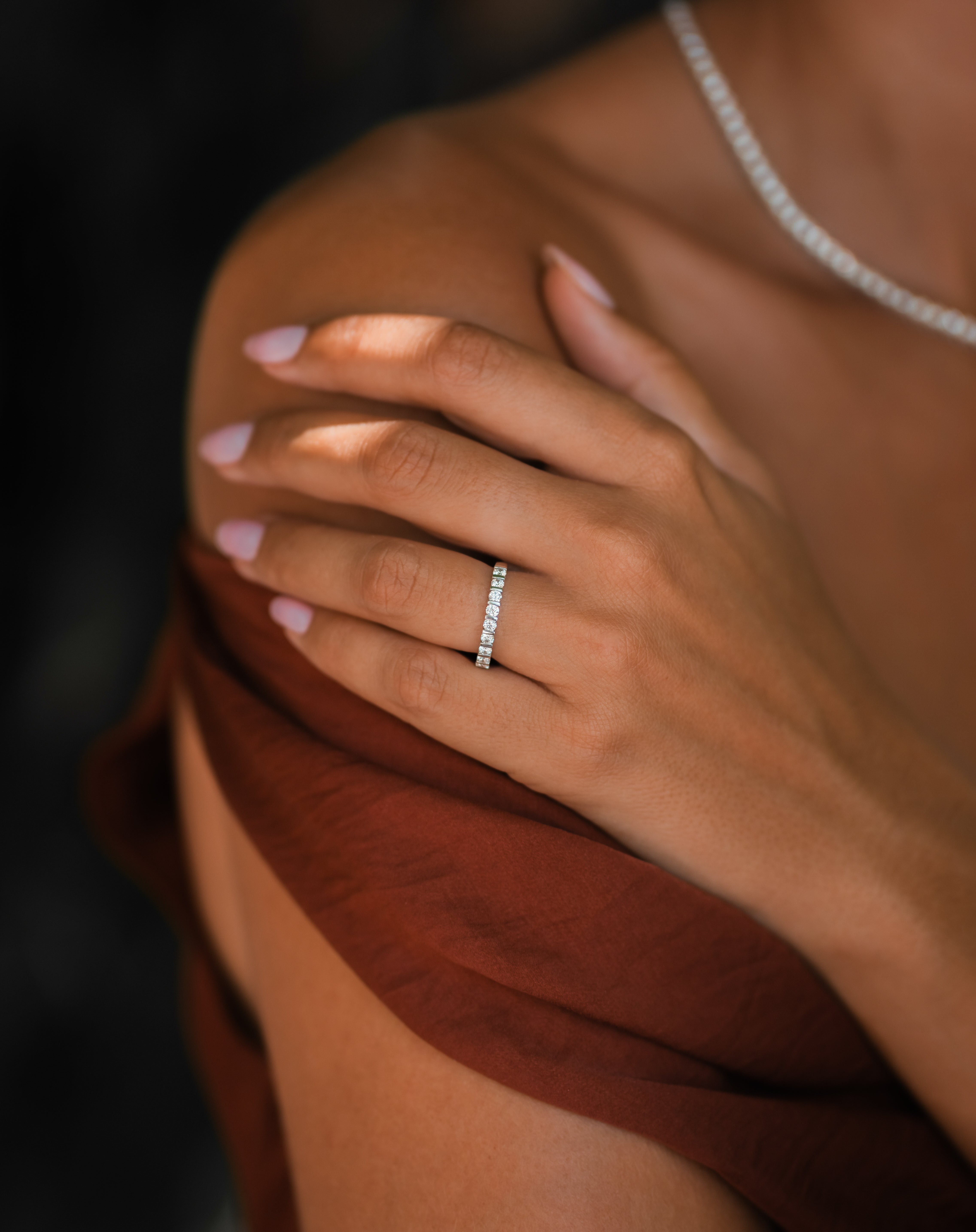 Halo Diamond Full Eternity Slim Band Ring - Solid Gold