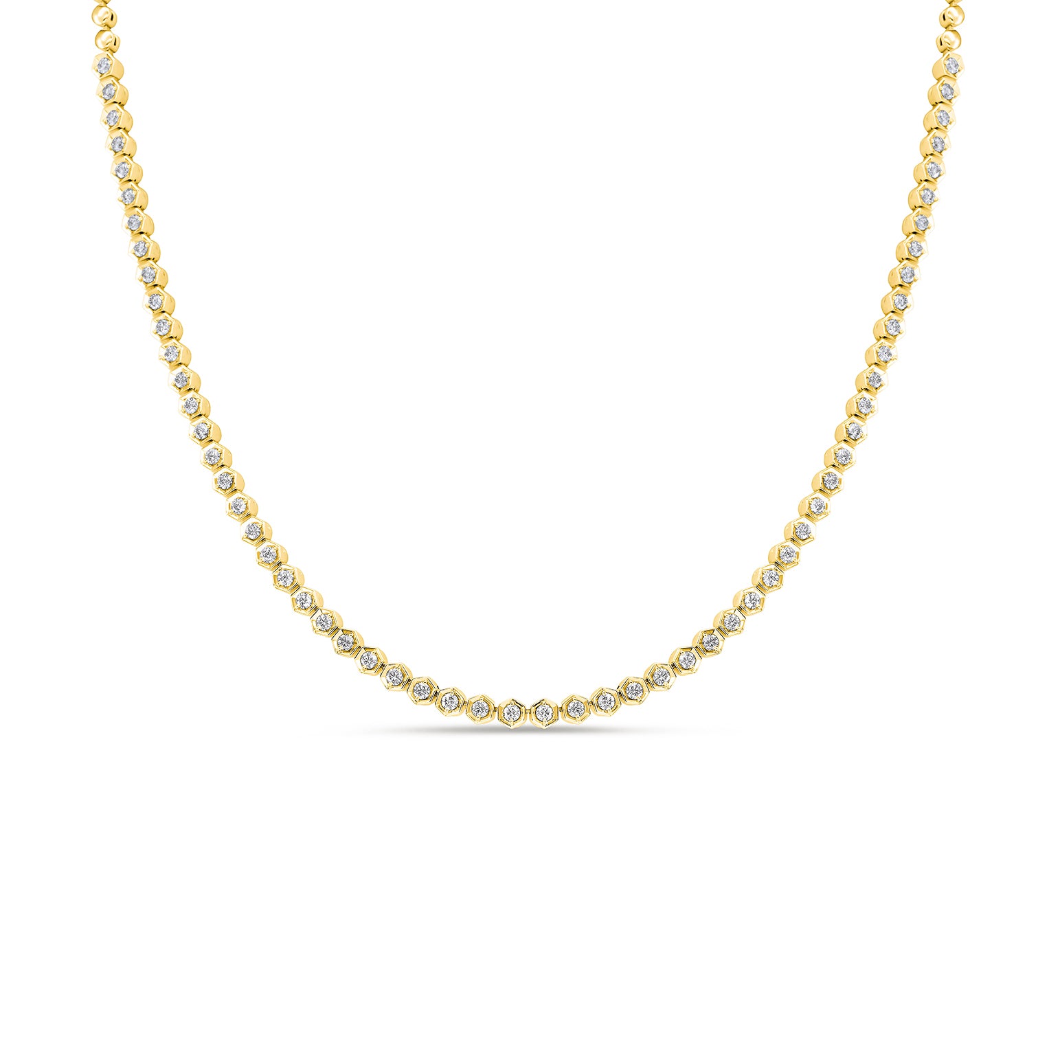 Hex Chunky Diamond Tennis Necklace - Solid Gold