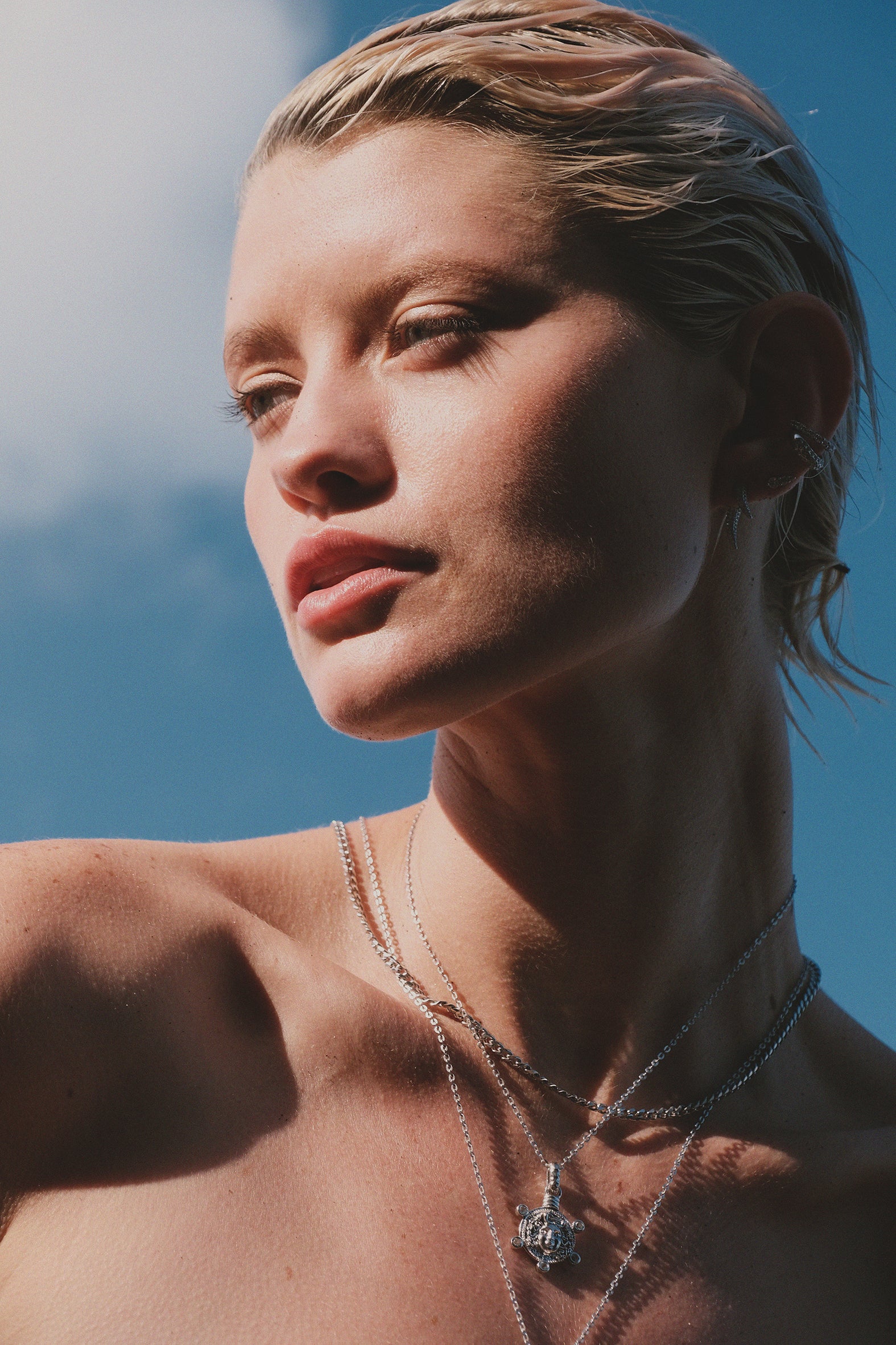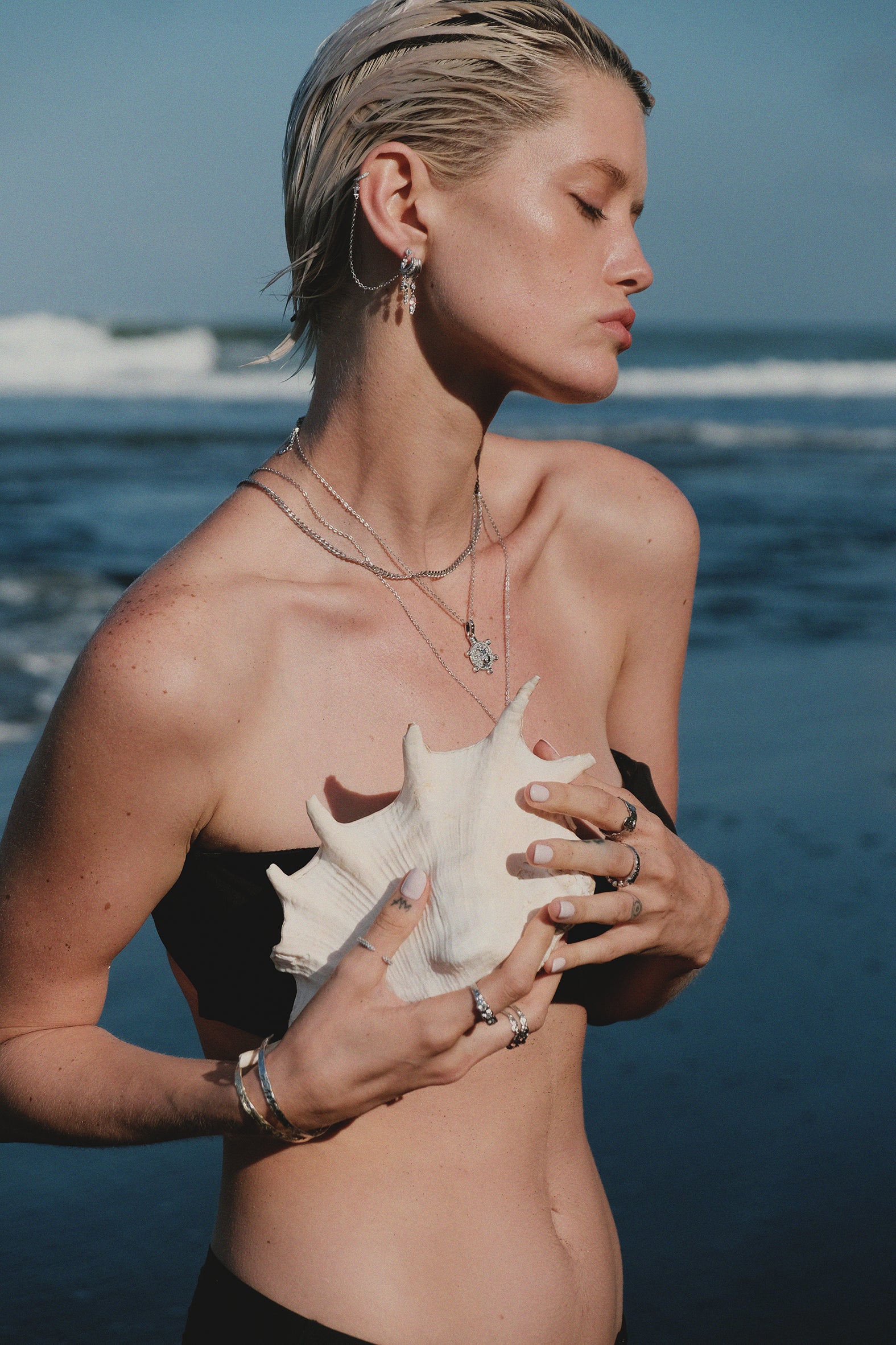 Our signature Illusion Earrings give the look of multiple piercings with just one. Cleverly designed with cascading chains and sparkling studs, they create a layered, curated ear without the commitment. It’s all the drama—none of the downtime.
