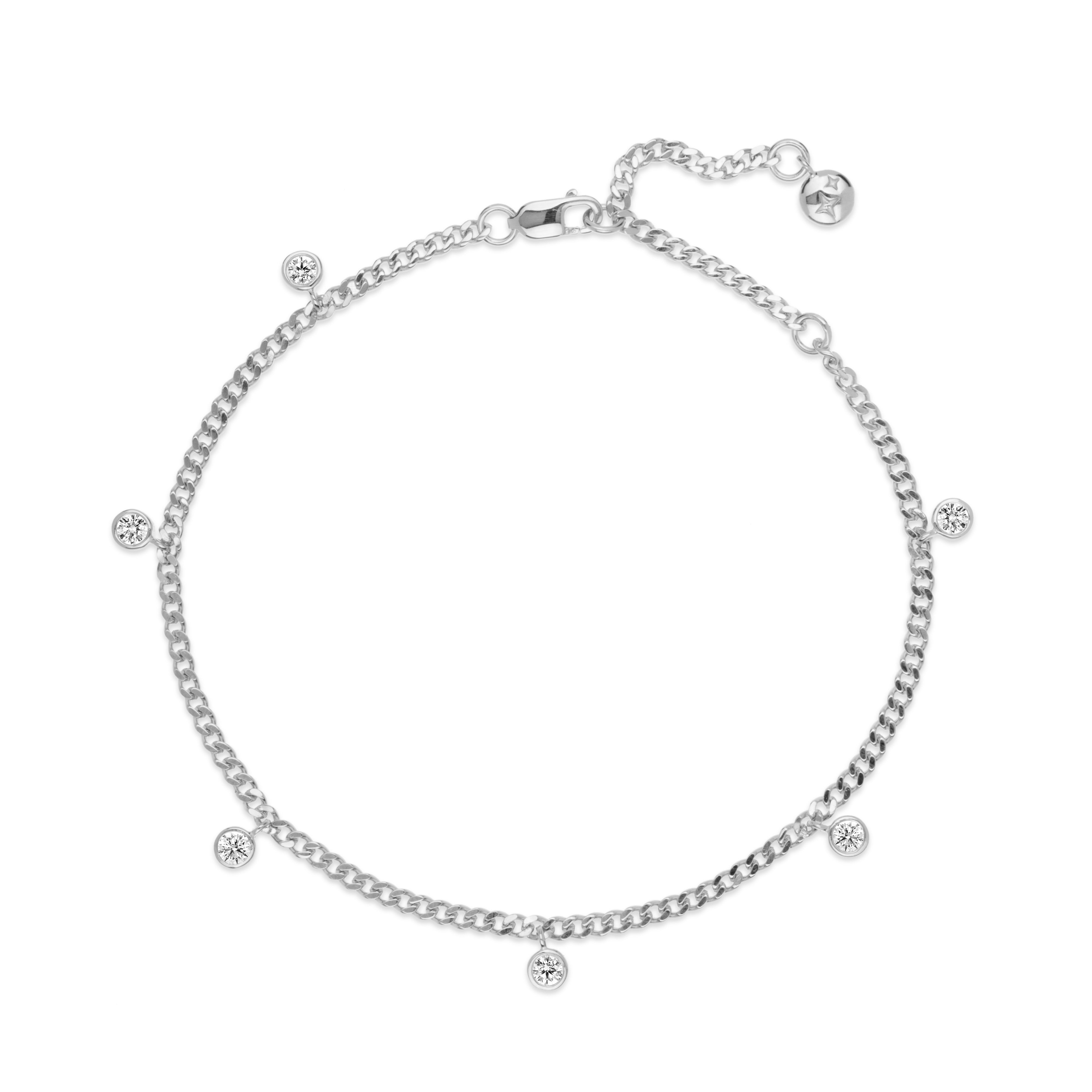 The Lisboa Sterling Gold Plated Gem Bracelet is a delicate and sophisticated piece that adds a touch of sparkle to any outfit. Made from recycled silver and featuring five brilliant white topaz gems set along a fine chain, this bracelet is designed to catch the light beautifully, adding a subtle yet stunning shine to your wrist. Whether you prefer to wear it on its own for a refined, minimalist look or stacked with other bracelets for a more layered style, the Lisboa Bracelet is versatile enough to complement any jewellery collection. Its timeless elegance makes it a perfect choice for both everyday wear and special occasions.