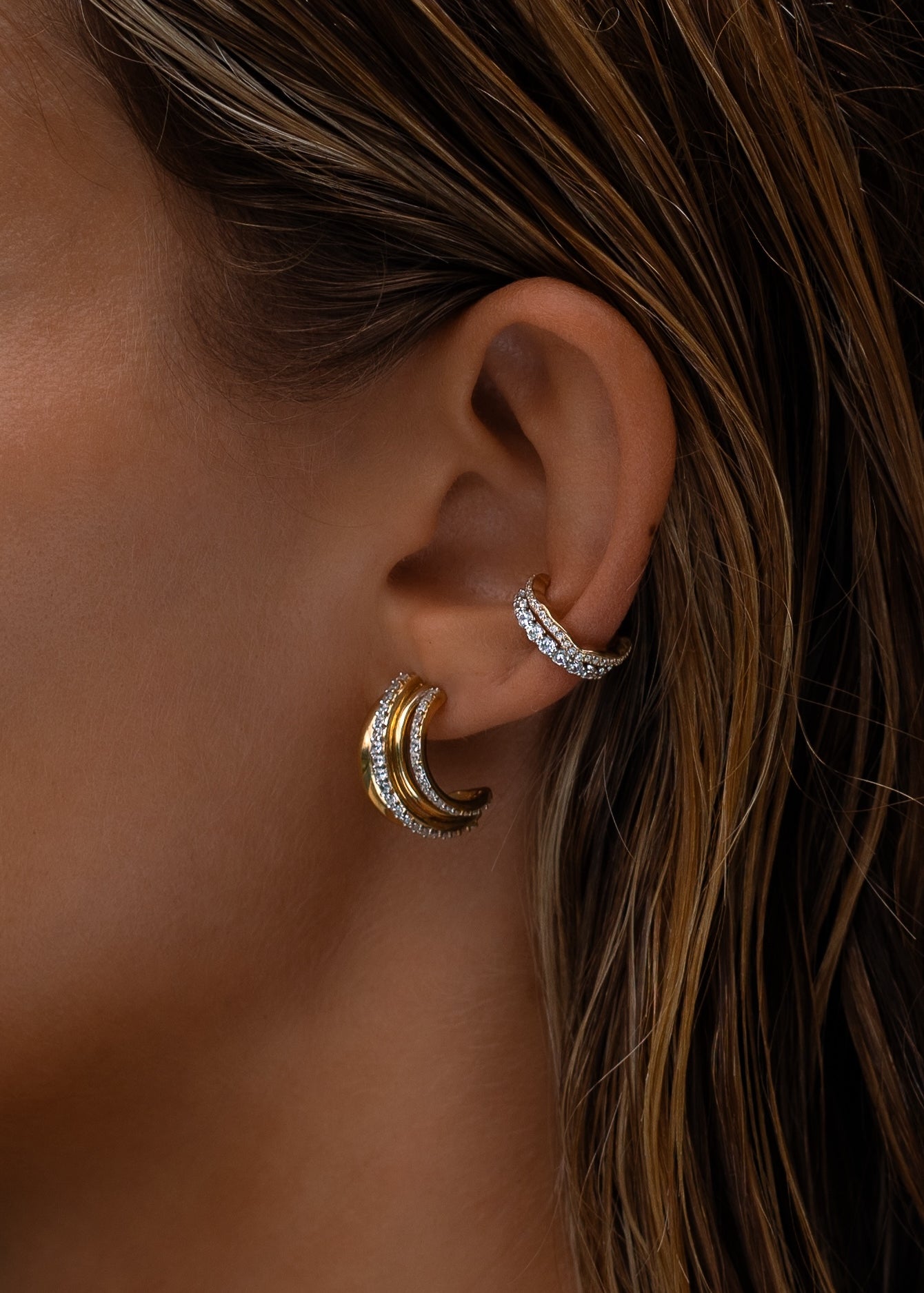 The original Illusion Earrings by Aaria London are designed to create a bold, layered look effortlessly. Wear them solo or pair them together for a striking statement stack. The Illusion Earrings, our signature best-sellers, have become icons in modern jewellery layering.