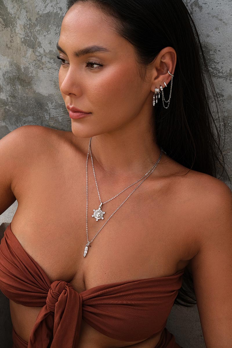 Our signature Illusion Earrings give the look of multiple piercings with just one. Cleverly designed with cascading chains and sparkling studs, they create a layered, curated ear without the commitment. It’s all the drama—none of the downtime.