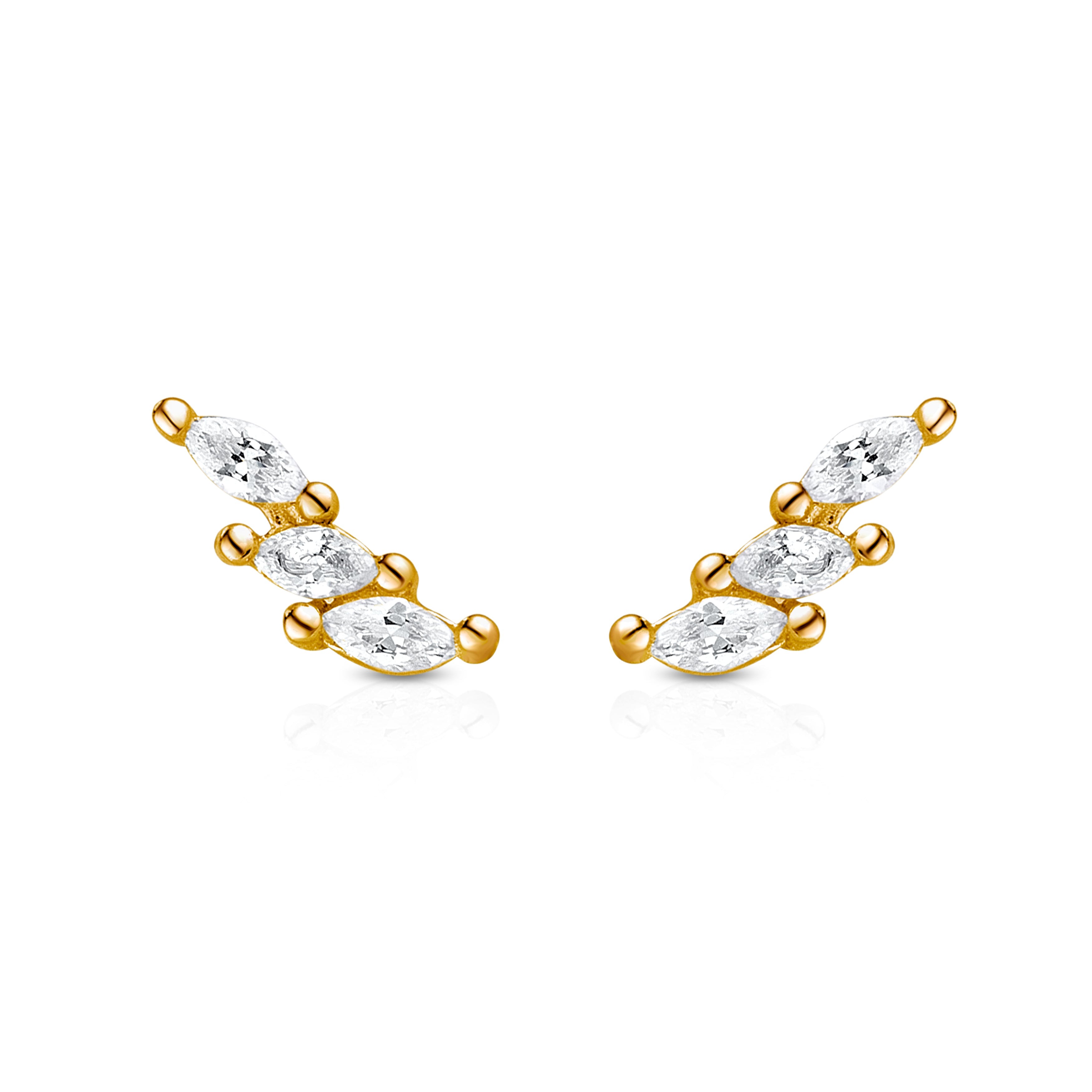 The Bella Studs are your new everyday sparkle. Three marquise-cut cubic zirconia stones sit in a gentle curve to create a chic climber effect along the ear, catching the light with every move. They’re perfect worn solo for a subtle shimmer or stacked with your favourite hoops and huggies for a bolder, layered look.