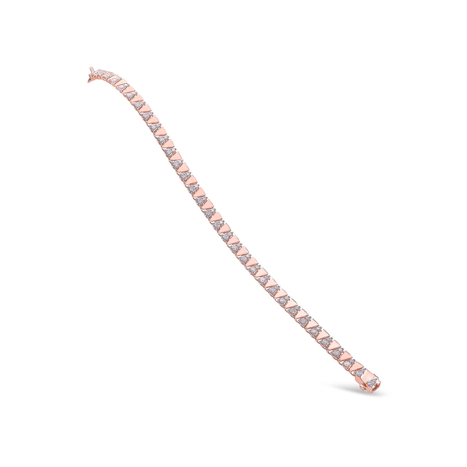 This bracelet reworks the classic tennis with diamonds set in repeating triangular links all the way around the wrist. The sharp, geometric pattern gives it a subtle edge, and just like the Bermuda Triangle, it has a way of swallowing all the attention.