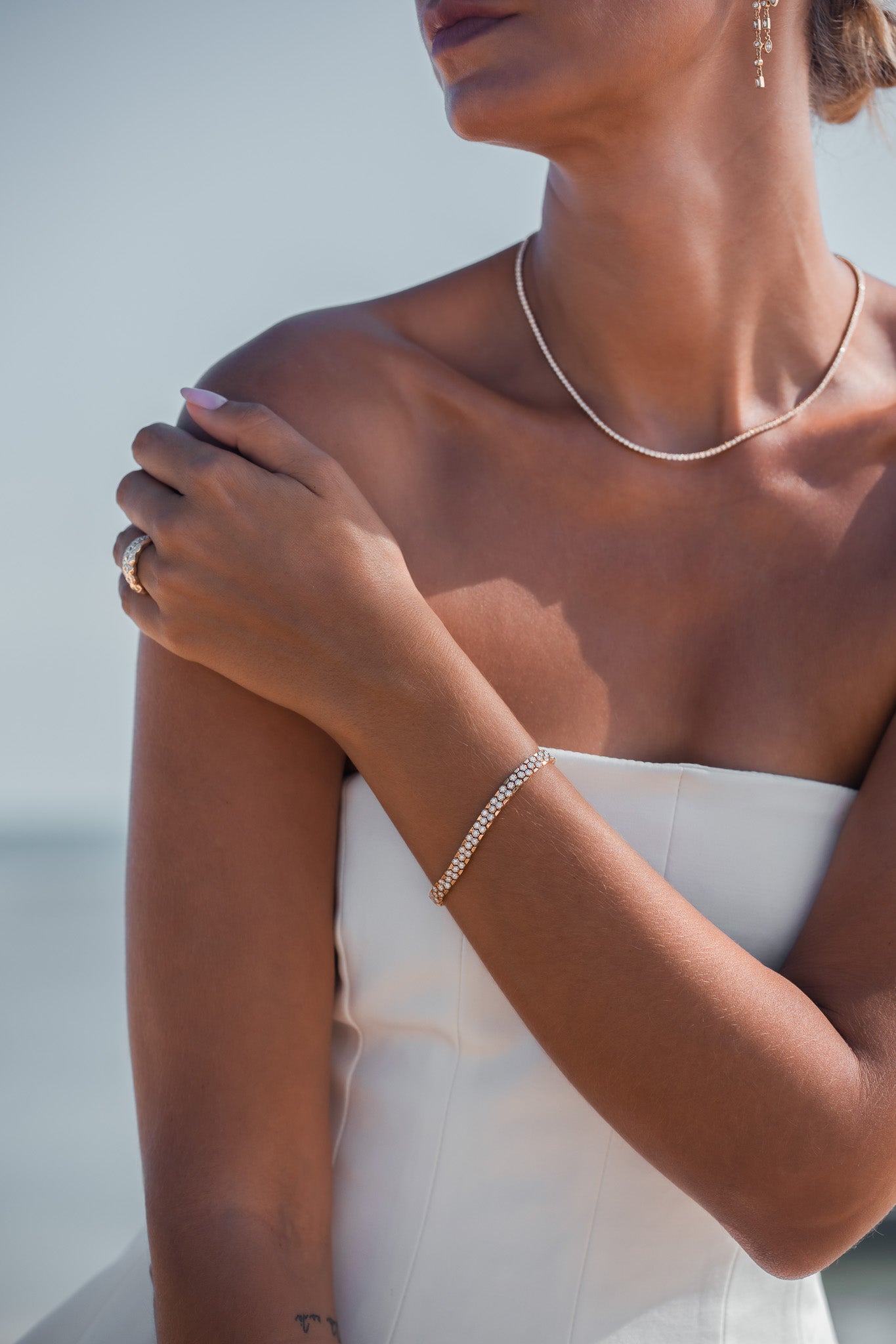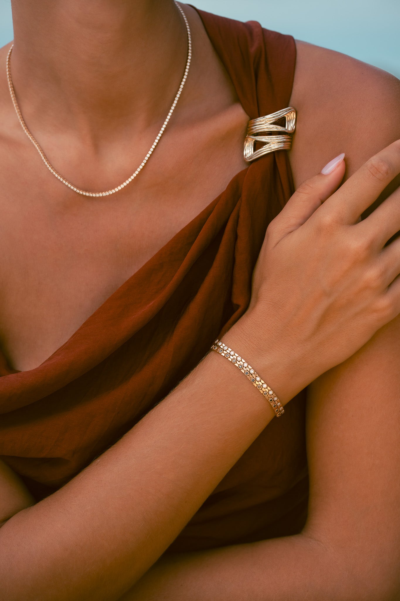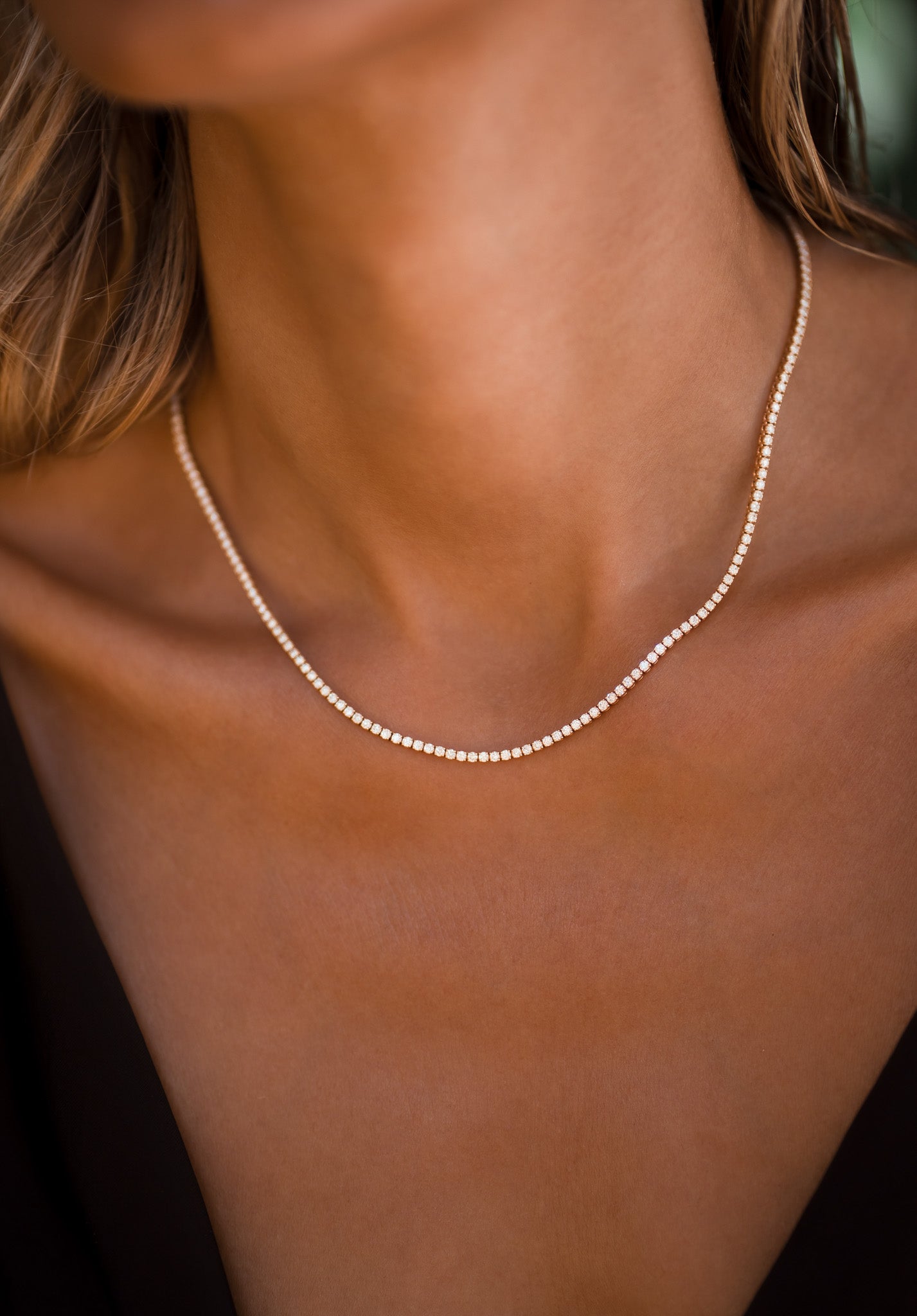 A timeless essential, this classic tennis necklace drapes the neckline in a continuous row of diamonds for a clean, even sparkle at every angle. Refined, minimal and endlessly wearable, it’s the piece you can put on with anything and never take off.
