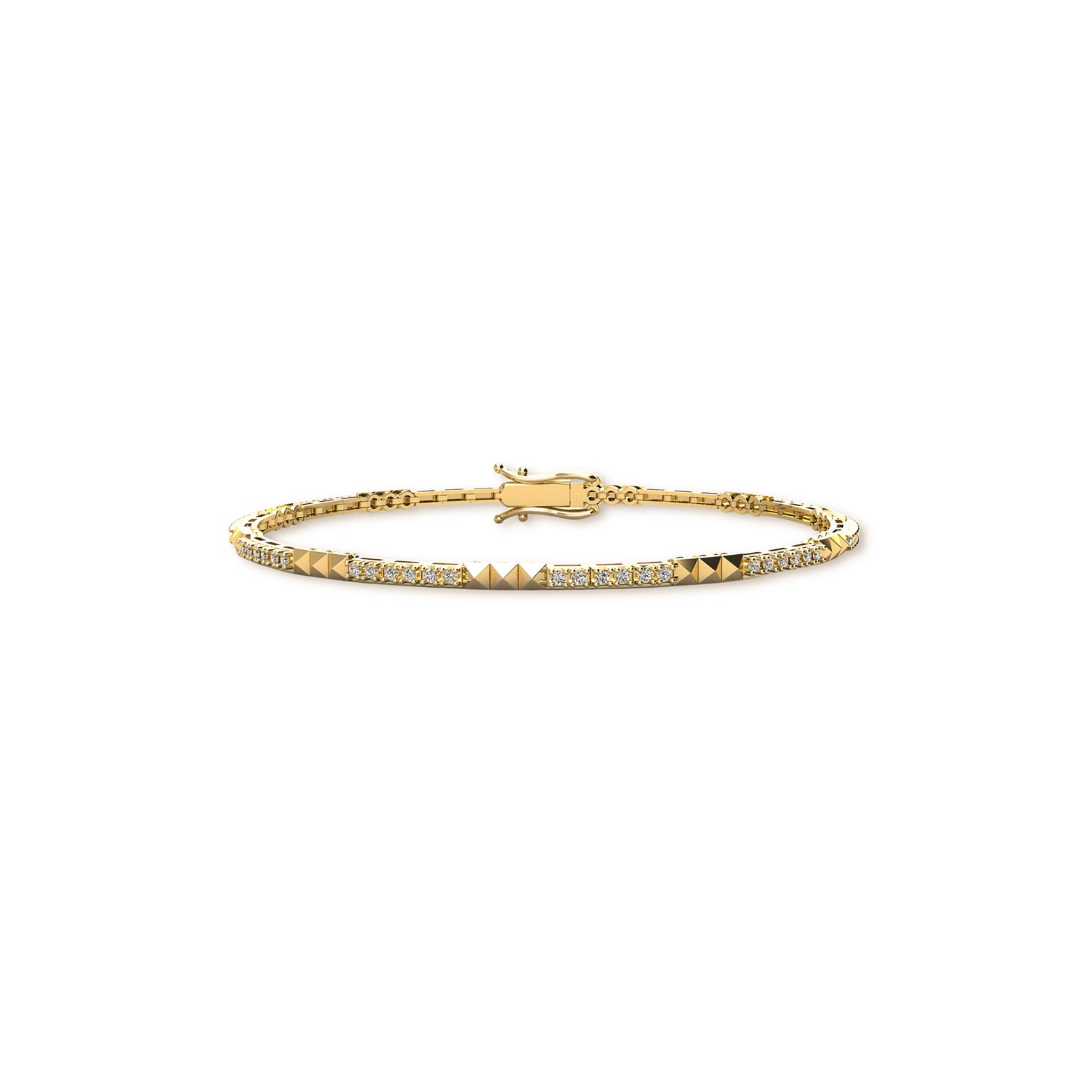 Crafted in solid 14k gold, the design alternates pavé-set diamonds with bold pyramid studs for a look that’s sleek yet unapologetically rebellious. Refined enough for everyday, with just the right amount of edge, it’s made to wear solo or stacked with your favourite pieces.