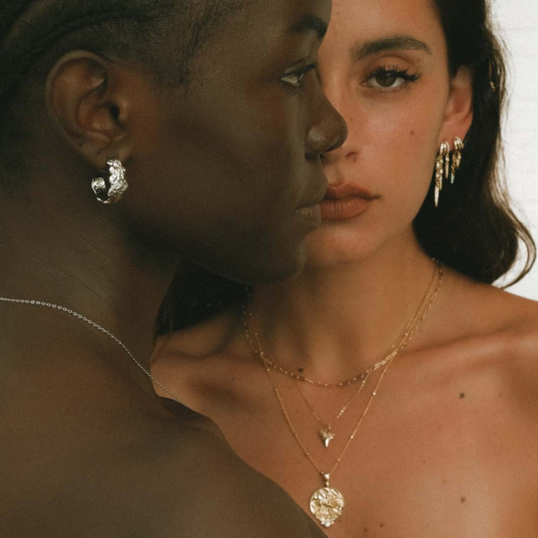 Our signature Illusion Earrings give the look of multiple piercings with just one. Cleverly designed with cascading chains and sparkling studs, they create a layered, curated ear without the commitment. It’s all the drama—none of the downtime.