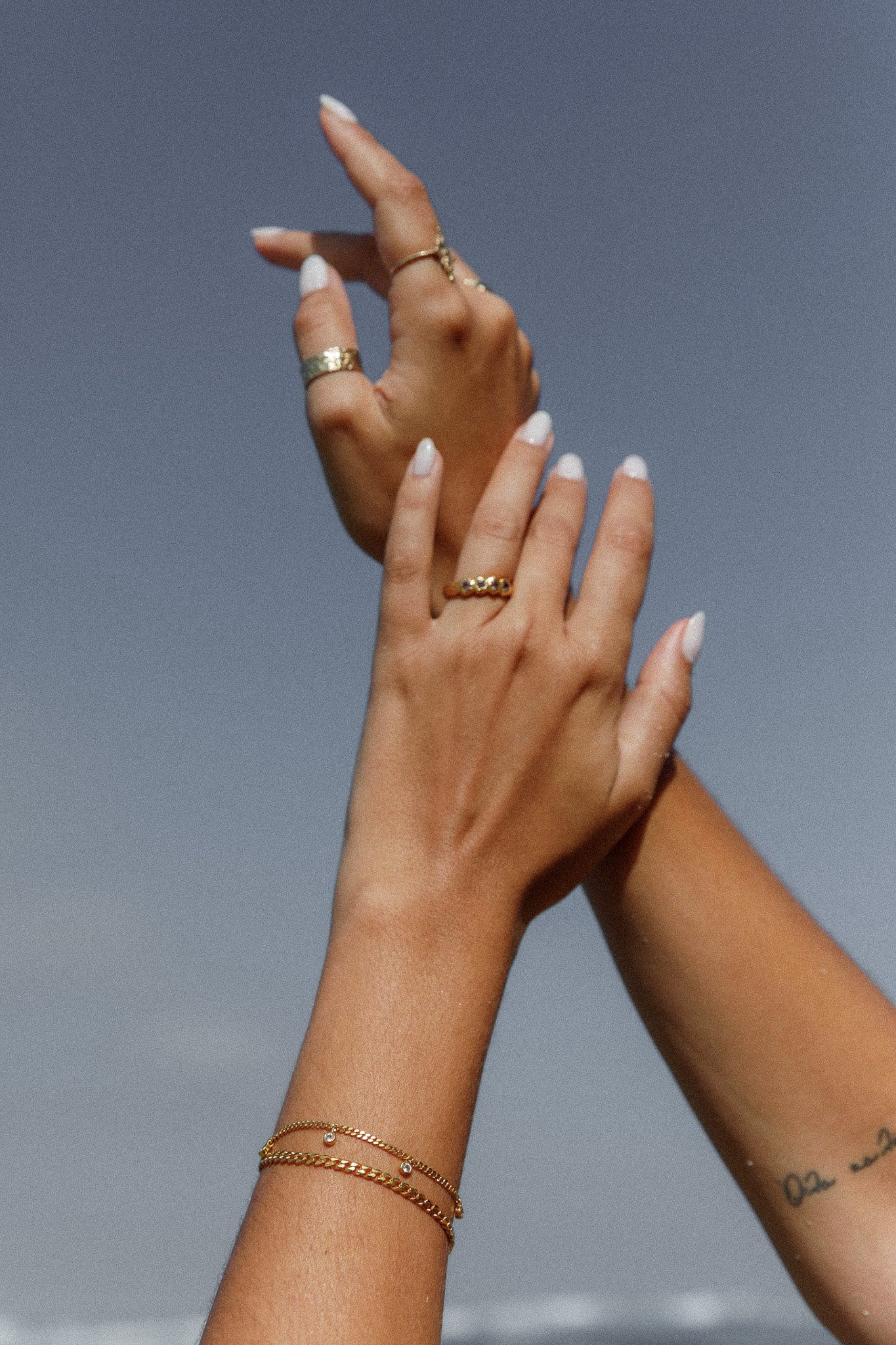 The Lisboa Sterling Gold Plated Gem Bracelet is a fine, light-catching chain dotted with five brilliant light blue topaz stones. Lisboa is delicate but noticeable - the perfect hint of colour worn solo, and an easy stacker when you want more. Timeless, minimal, and made to wear every day is a delicate piece that adds a touch of sparkle to any outfit.