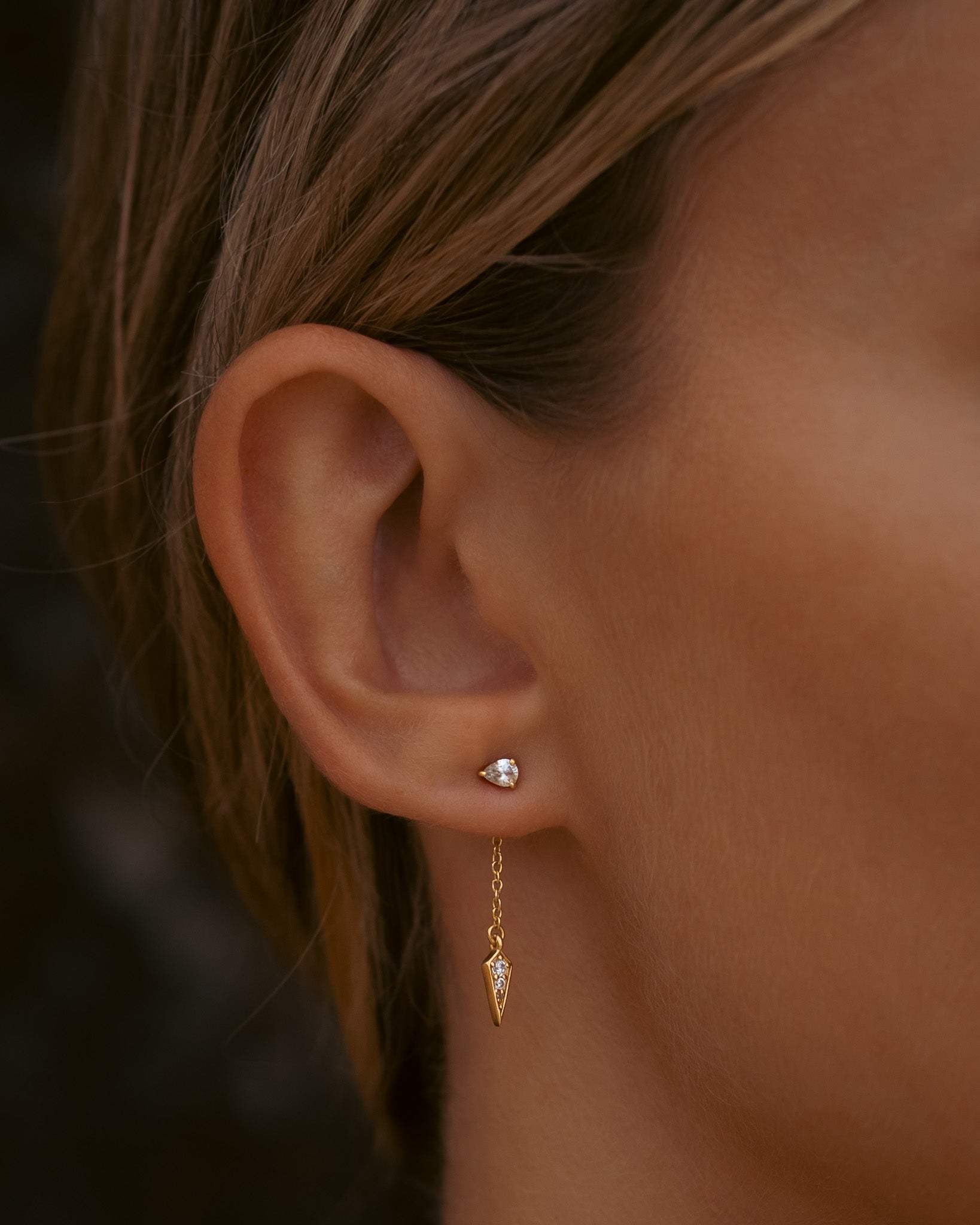 Our signature Illusion Earrings give the look of multiple piercings with just one. Cleverly designed with cascading chains and sparkling studs, they create a layered, curated ear without the commitment. It’s all the drama—none of the downtime.
