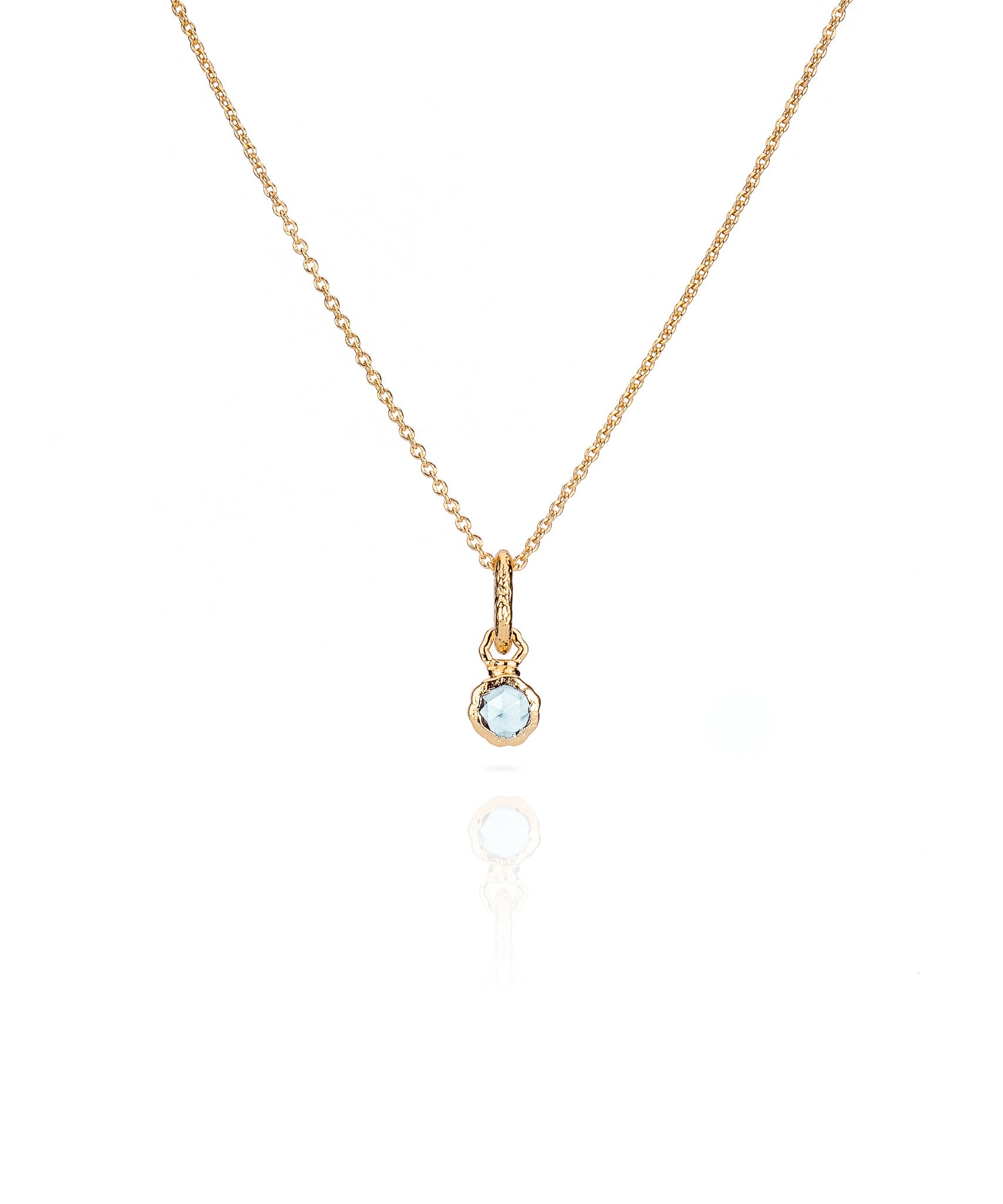 The Sahara Mini Necklace is a beautifully textured piece, inspired by natural, molten forms. Crafted from sterling silver and plated in 14k gold vermeil, this necklace features a pale blue topaz stone on adjustable chain adding depth and warmth to its organic design.
