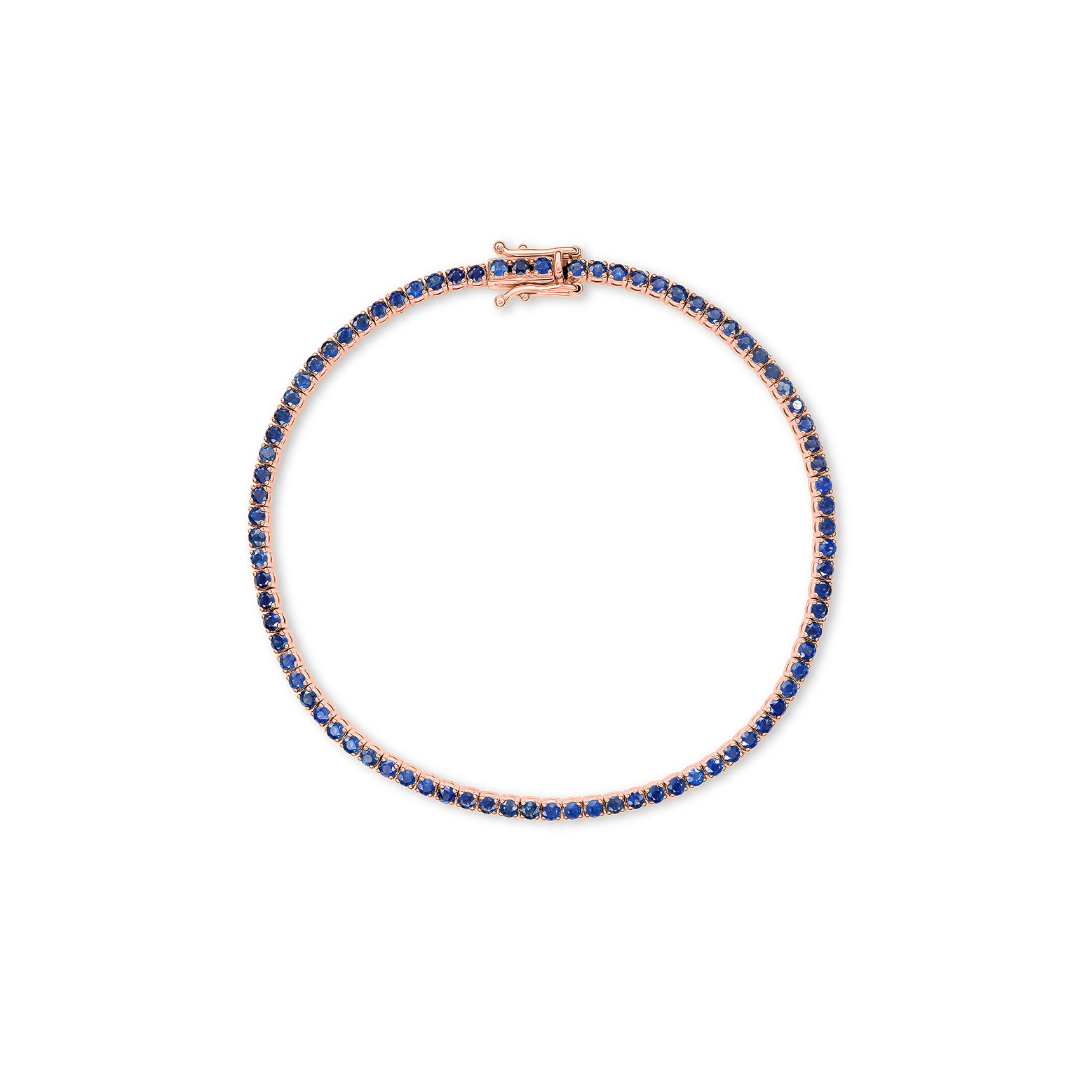 This tennis bracelet wraps the wrist in a continuous line of rich blue sapphires, each stone set closely together for an even, saturated glow. The slim, minimal silhouette keeps it refined enough for every day, whether you wear it solo or stacked with your other favourites.