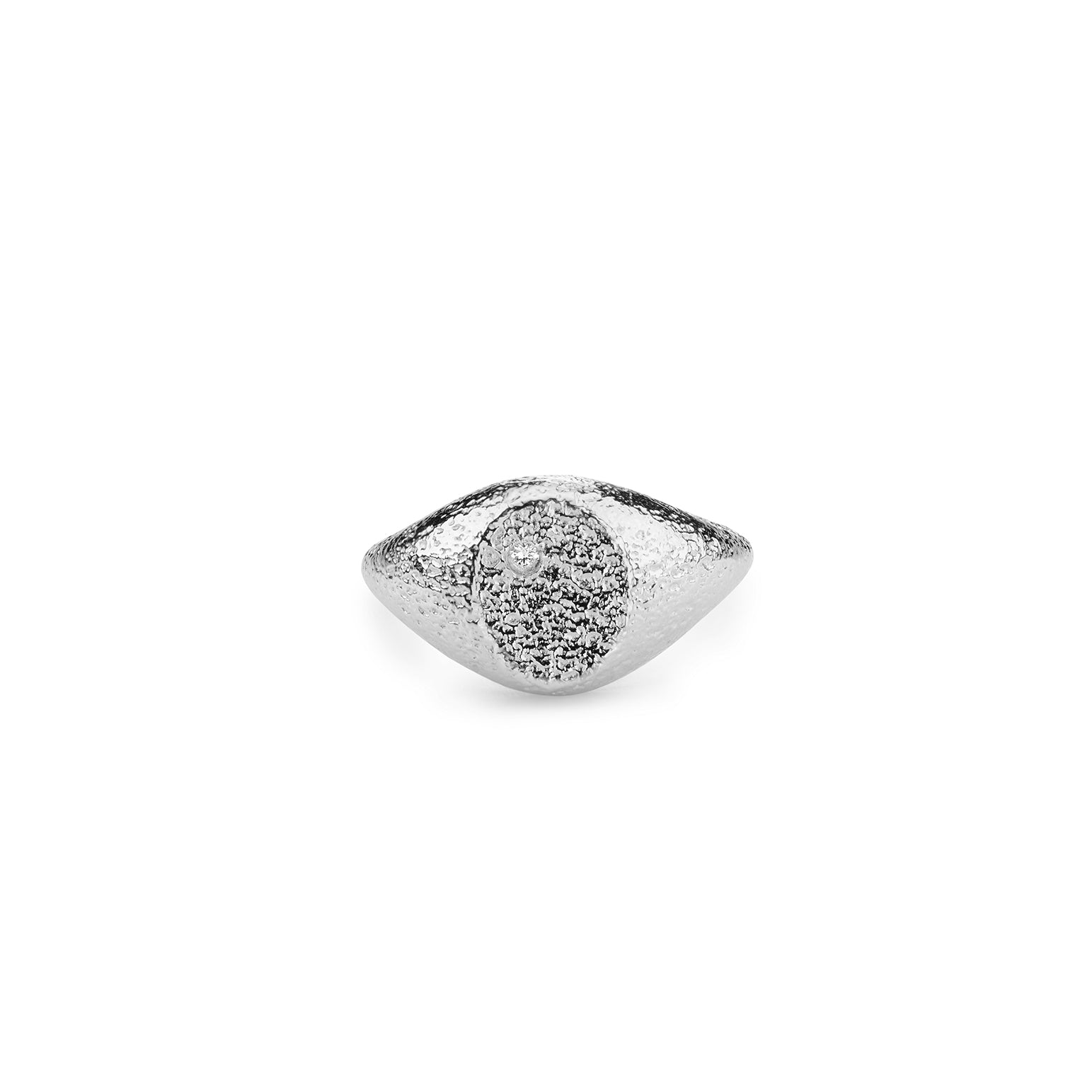 The Uma Hammered Signet Ring is a modern twist on a timeless classic. Made from Recycled Sterling Silver and 14k Gold Vermeil, it features a unique sandcast texture that gives it an earthy, refined finish. A tiny White Diamond is set discreetly on the surface, offering a touch of understated sparkle without overpowering its simplicity.